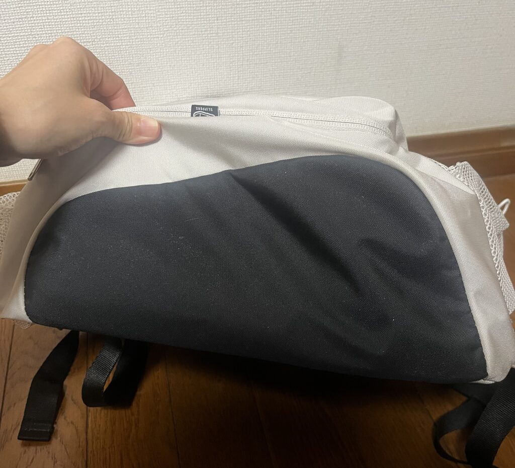リュックの下部から取り出せるシューズ入れポケットがついていました。