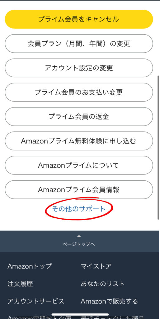 ⑥一番下の青字、「その他のサポート」をクリック