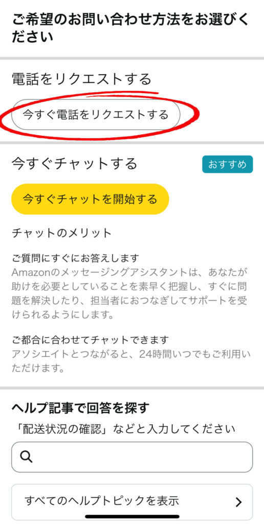 ⑦1つ目の「今すぐ電話をリクエストする」をクリック