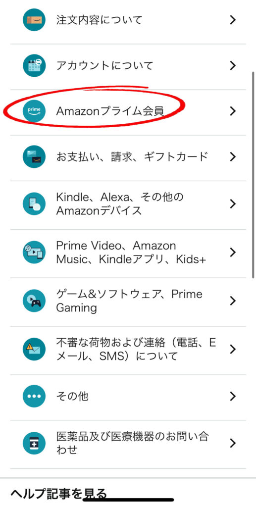 ④上から3つ目の「Amazonプライム会員」をクリック