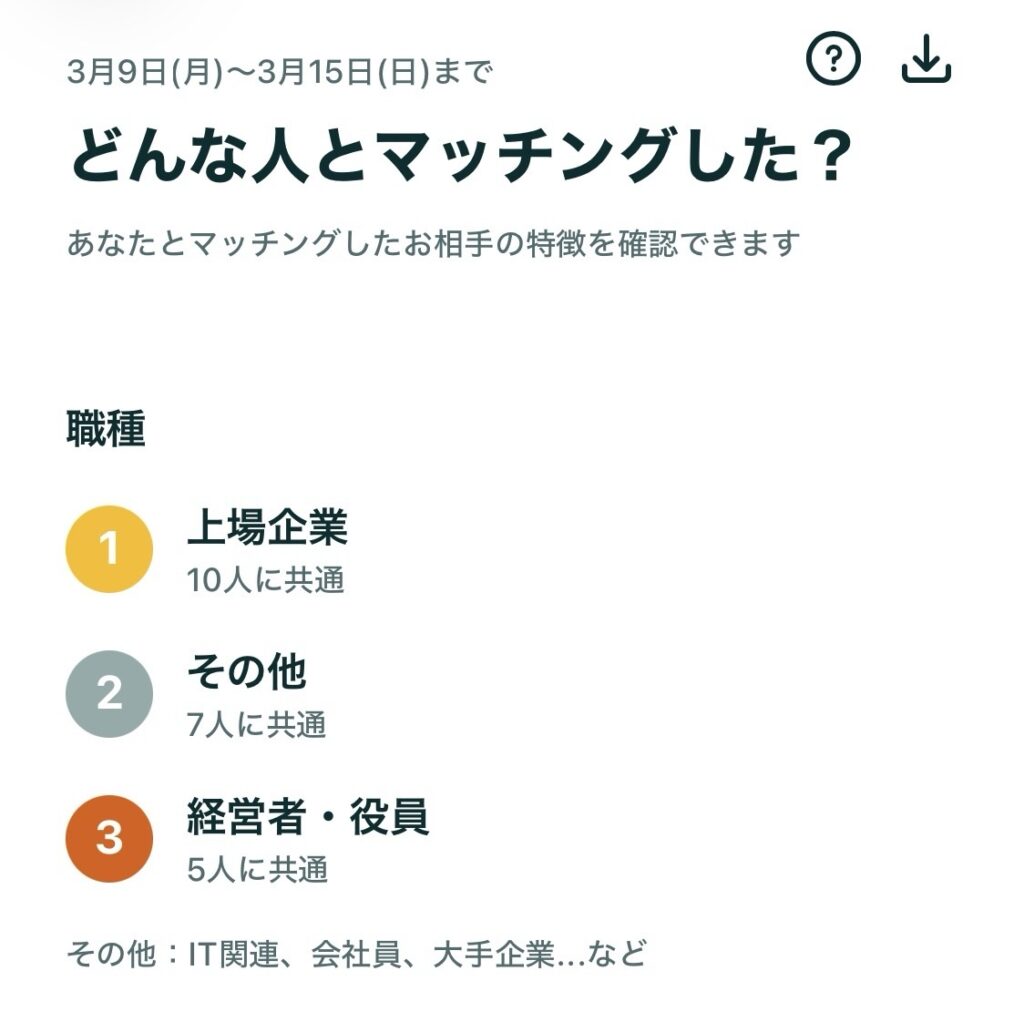 ちなみに、今回登録当初でマッチした方々の傾向?はこんな感じだったそうです。