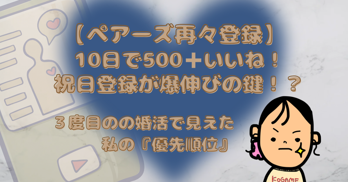 気がつくと、結果、ペアーズ再登録10日目で500+いいねを頂くことができました。