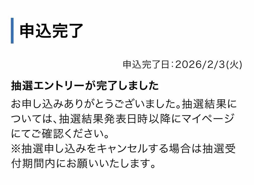 まあ、まずは抽選なのでそもそも外れるかもしれないですし。