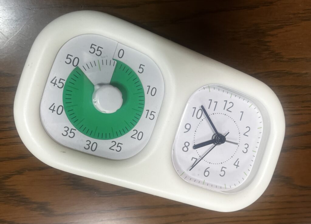 最近はもっぱらYouTubeの時間命なので、「長い針が◯までね。」と決めて見せてはいますが、正直それが『何時の何分なのか』や、『その時間がどの程度なのか』という時間的な概念は子が目の中で確立されていないです。