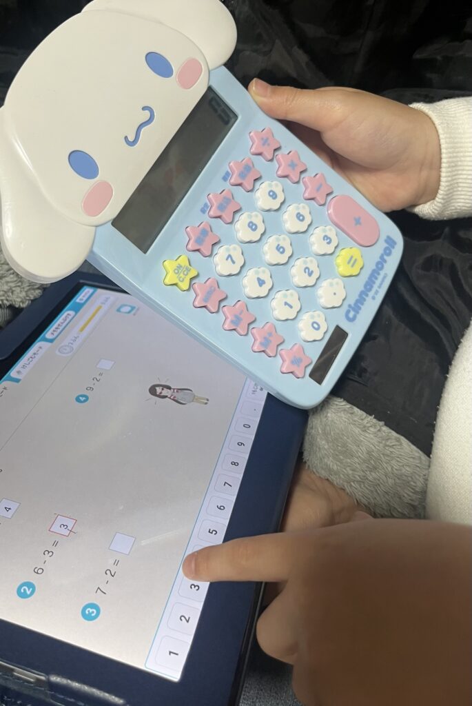 それと同時に、純粋に、『引き算の答えを導け』という問題に対し、『電卓を使った方が効率的』と普段の生活の中で得た知恵を自ら活かした子がめに関心。