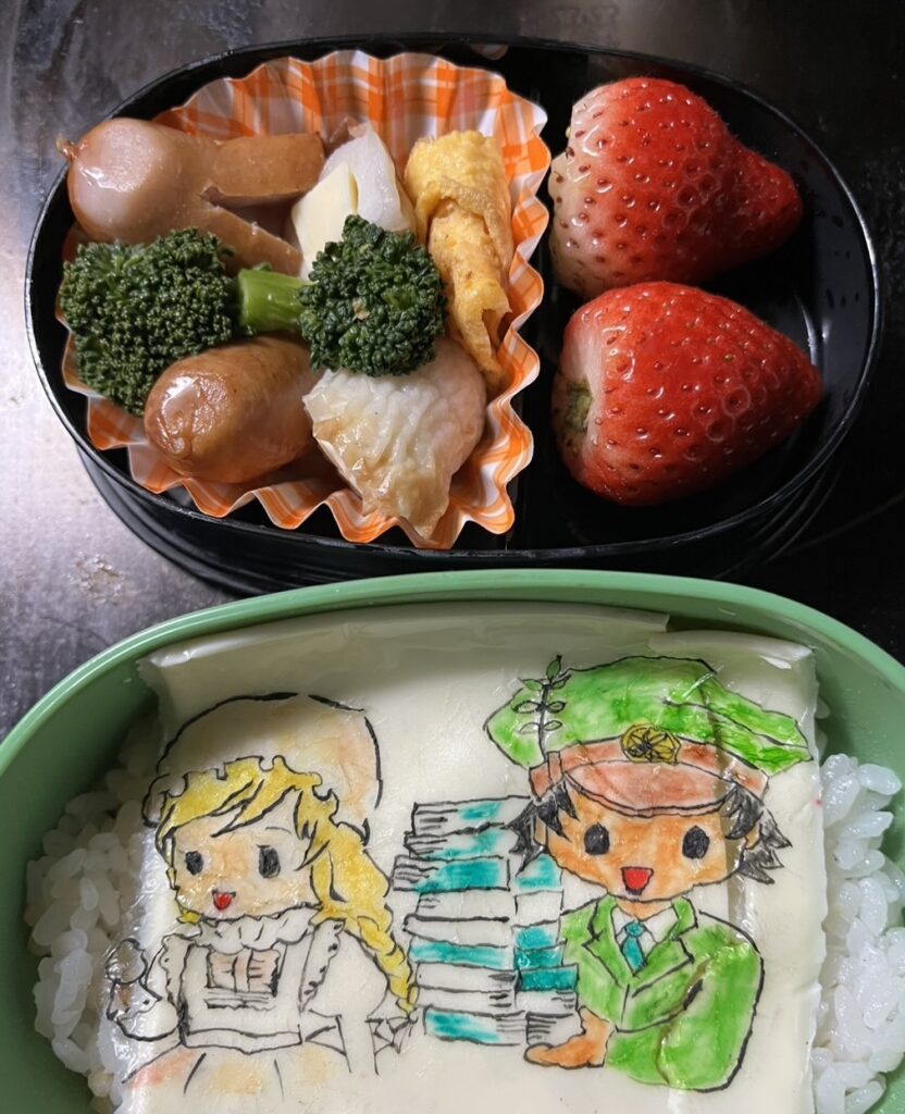 ということで、今は一応、普通のお弁当のご飯部分にオブアートを乗っける、なんちゃってキャラ弁というところに落ち着いています。