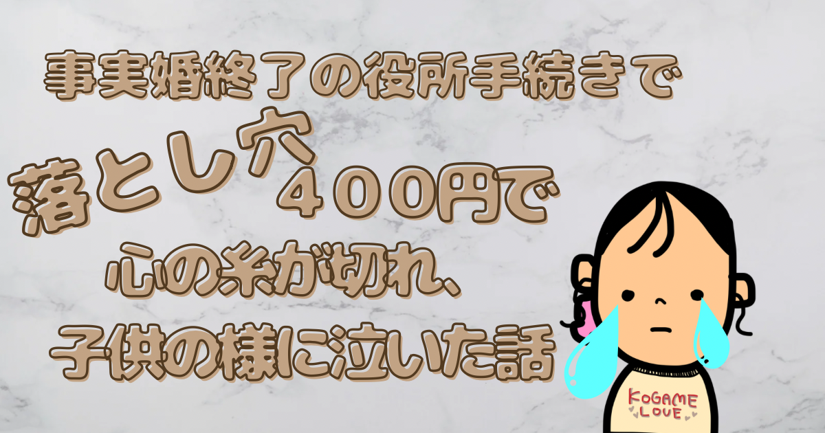 【ステップファミリー】事実婚修了の役所手続きで落とし穴。400円で心の糸が切れ、子供の様に泣いた話。