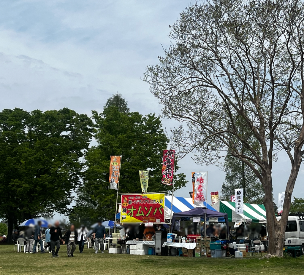 公園内はテントやシートを広げることも可能なので、持参したお弁当やキッチンカー、そして売店などでも昼食をとっている方を見かけますが・・・