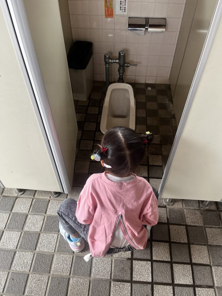 少し前のお出かけで和式トイレを初体験した我が子は和式トイレに興味津々で眺めていました(笑